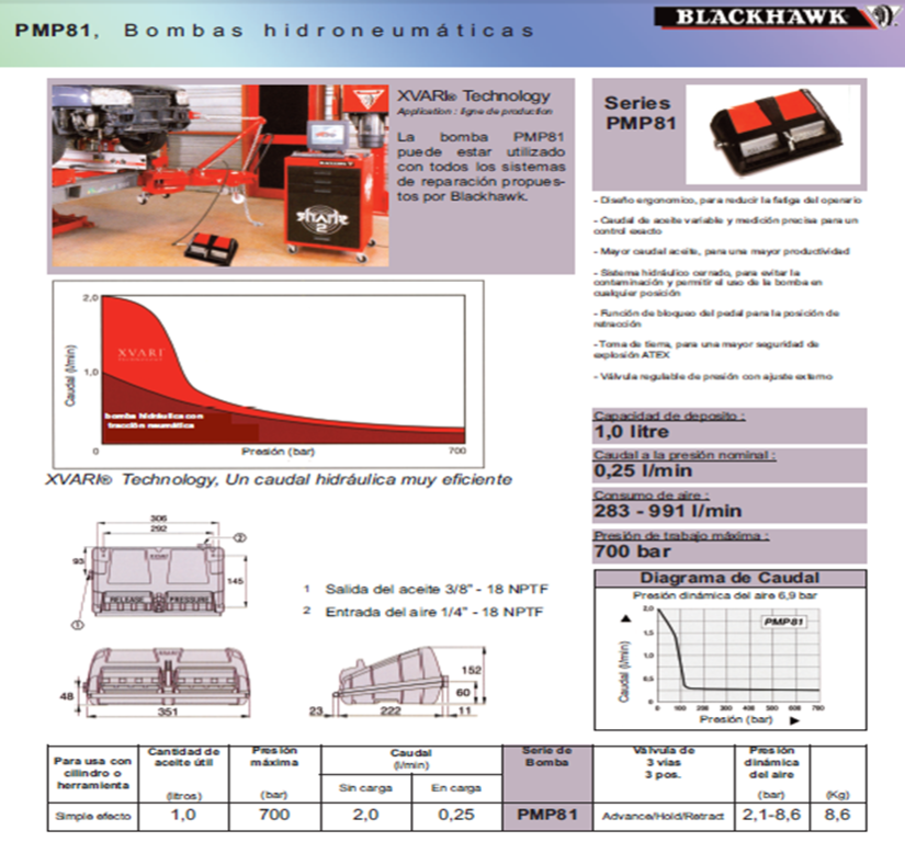Diseño ergonomico para reducir el cansancio del operario. Flujo de aceite variable y medición precisa, para un control exacto. Mayor flujo de aceite, para una mayor productividad.